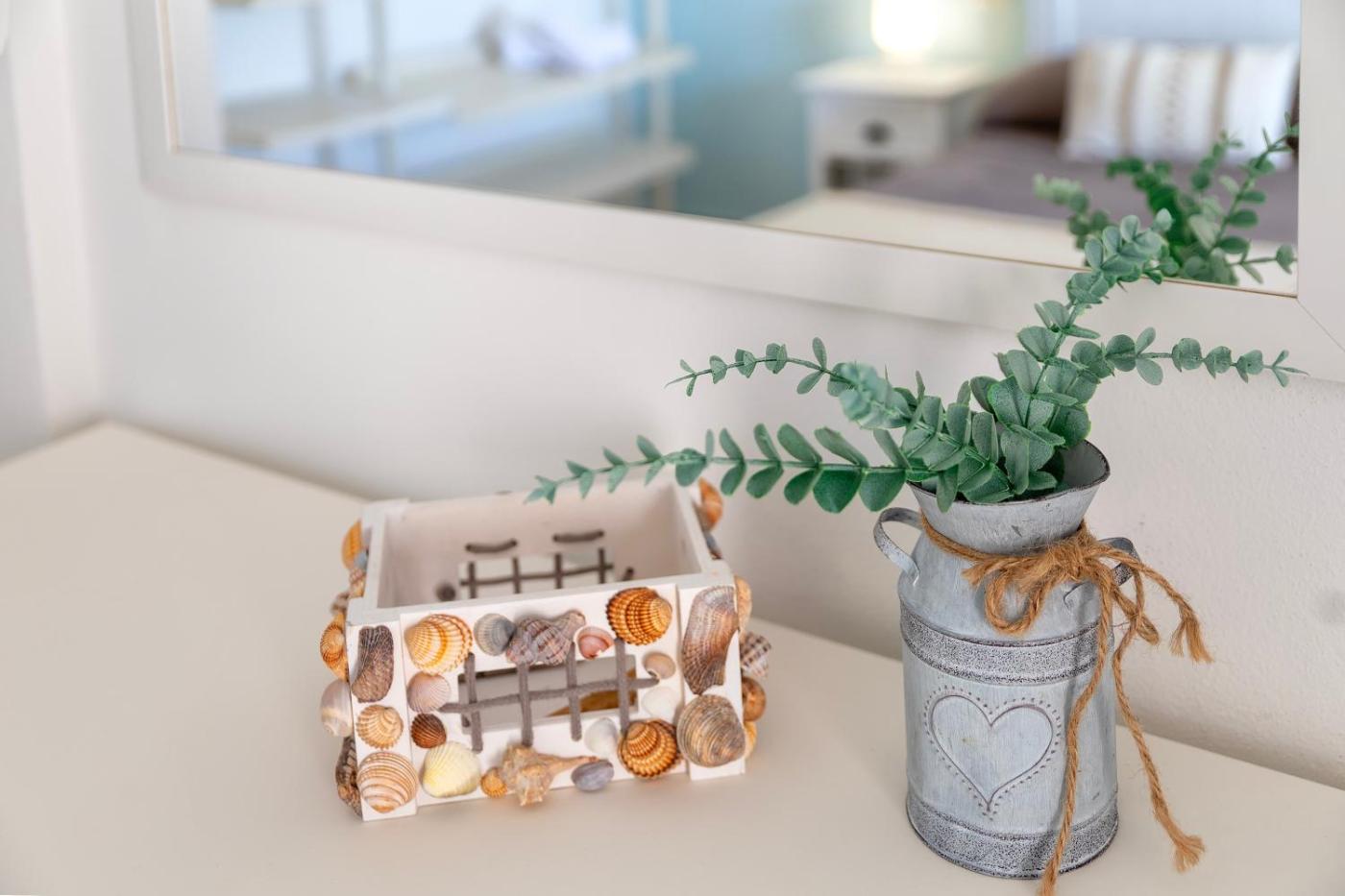 Questa casa vacanze prevede 2 camere da letto, 1 bagno, lenzuola, asciugamani, una TV, una cucina con utensili e una terrazza con la vista sul mare.